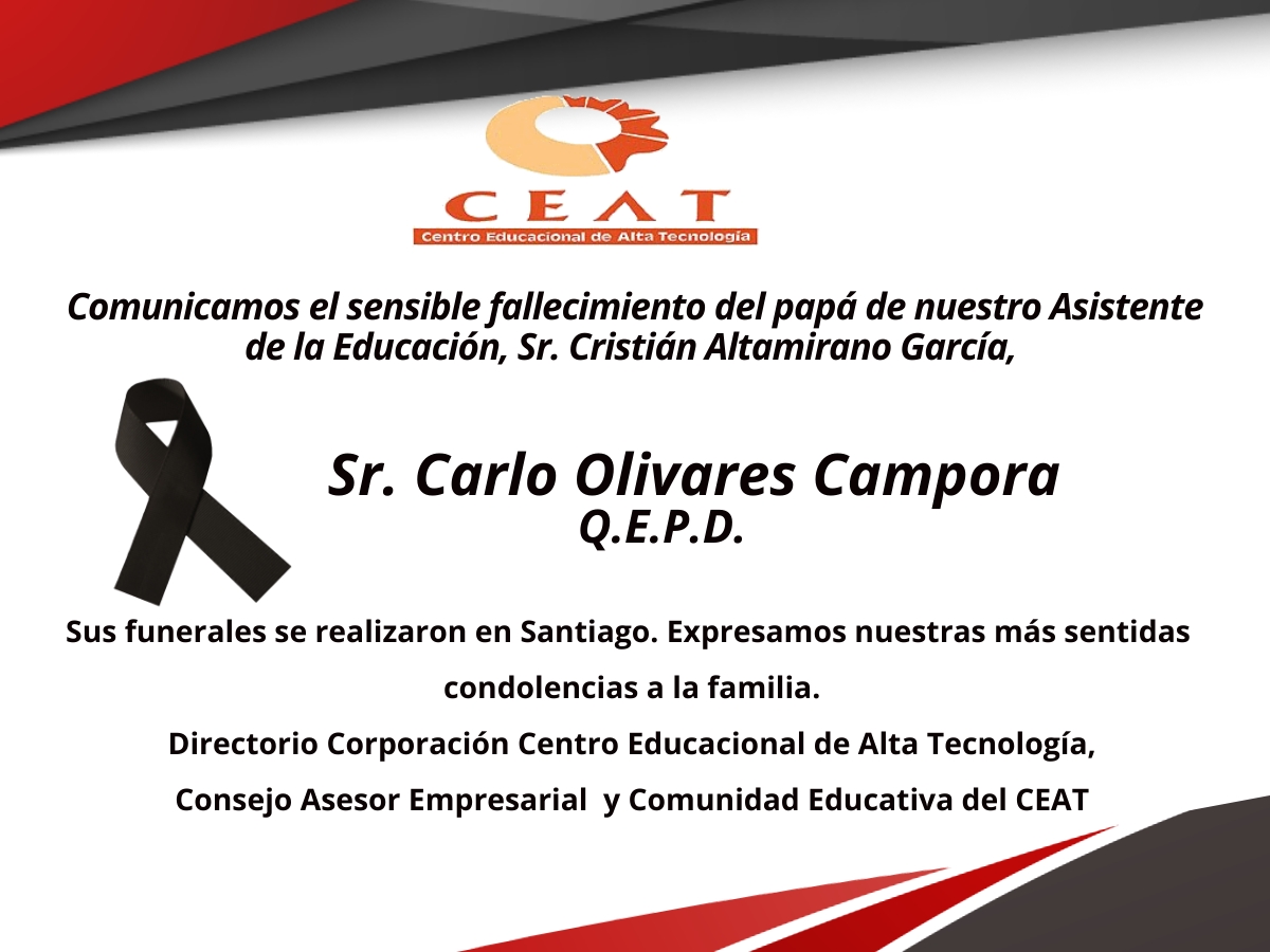Comunicamos el sensible fallecimiento del papá de nuestro Asistente de la Educación, Sr. Cristián Altamirano García,