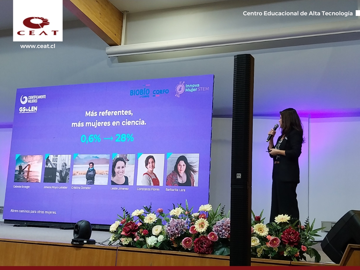 Nuestras estudiantes formaron parte de la charla magistral Innova Mujer STEM de la Universidad del Bío-Bío, que contó con tres expositoras de alto impacto y liderazgo en el ámbito STEM. Este proyecto es una iniciativa liderada por la Universidad del Bío-Bío y financiada por Corfo Biobío a través del programa VIRALIZA. Su propósito es fomentar el desarrollo de emprendimientos de base científico-tecnológica liderados por mujeres mediante un evento regional de alto impacto con alcance internacional. La iniciativa busca empoderar, formar y conectar a mujeres en STEM, visibilizar sus logros y fortalecer un ecosistema inclusivo e innovador en la Región del Biobío. Iniciativas como Innova Mujer STEM son fundamentales para contrarrestar estereotipos, ofreciendo modelos a seguir, fomentando la confianza y creando entornos que empoderan a niñas y mujeres en STEM.