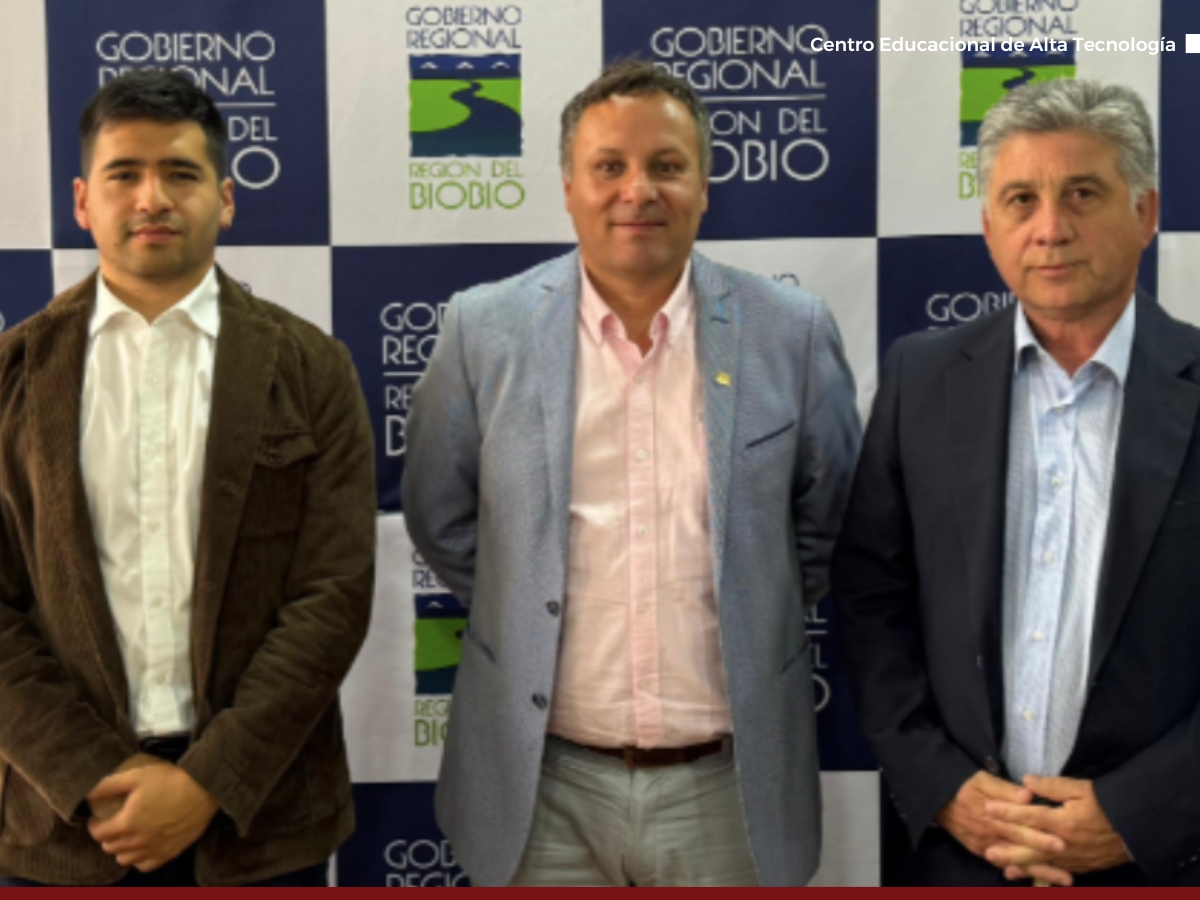 En la fotografía están los señores Oliver Castro, Coordinador Sector Educación de la USM, Víctor Valdebenito, Encargado de Vinculación con el Medio de la USM y el profesor Hemar Grollmus.