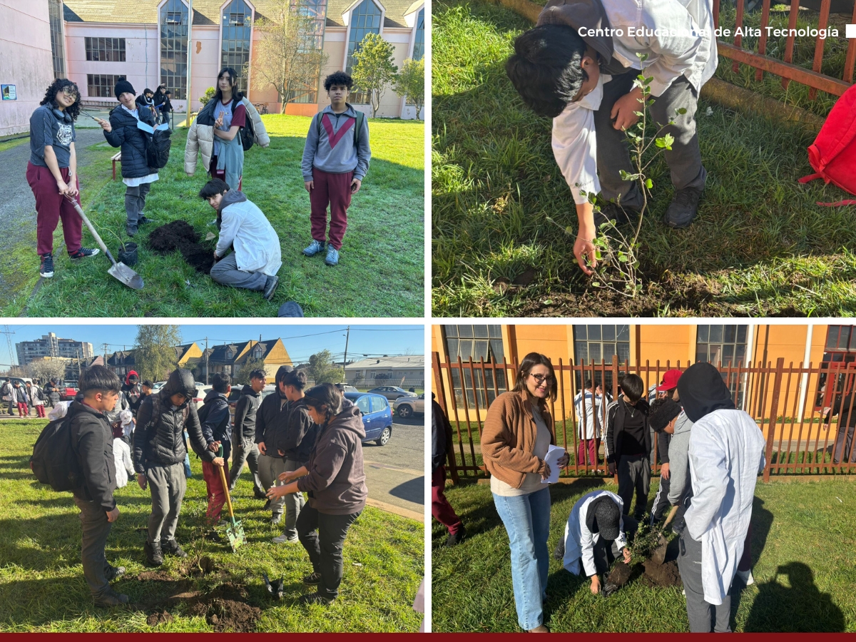 Además de promover la educación ambiental, la actividad pretende generar conciencia y sentido de pertenencia en los jóvenes. Nuestros estudiantes trabajaron en equipos con gran entusiasmo, plantando arrayanes, quillayes y un canelo en los jardines y patio del CEAT, asumiendo el compromiso de apadrinarlos mediante un monitoreo y cuidado constante.