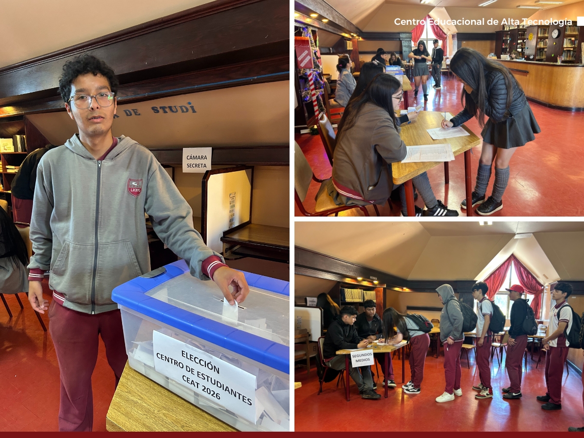 Durante el mes de noviembre y comienzos de diciembre, el Liceo CEAT llevó a cabo el proceso de elección del Centro de Estudiantes (CEE) para el año 2026, instancia que reflejó el compromiso y la vocación de servicio de las y los estudiantes que manifestaron su interés por representar a la comunidad estudiantil.